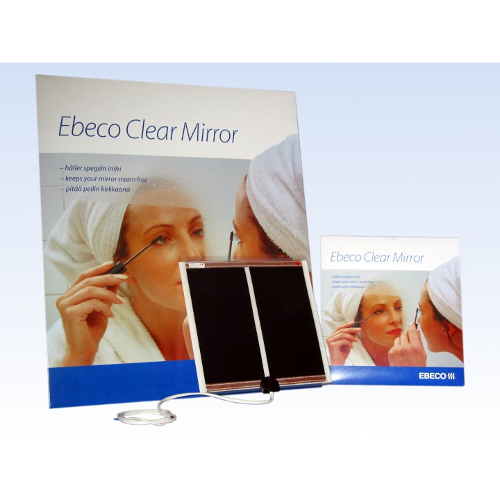 Ebeco Clear Mirror® to samoprzylepna folia grzewcza przeznaczona do ogrzewania luster. Jej zastosowanie skutecznie zapobiega zaparowywaniu luster w łazienkach. Folię przylepia się do spodu lustra, można podłączyć ją następnie do obwodu oświetleniowego łazienki, aby włączając światło np. nad lustrem włączyć jego podgrzewanie.
